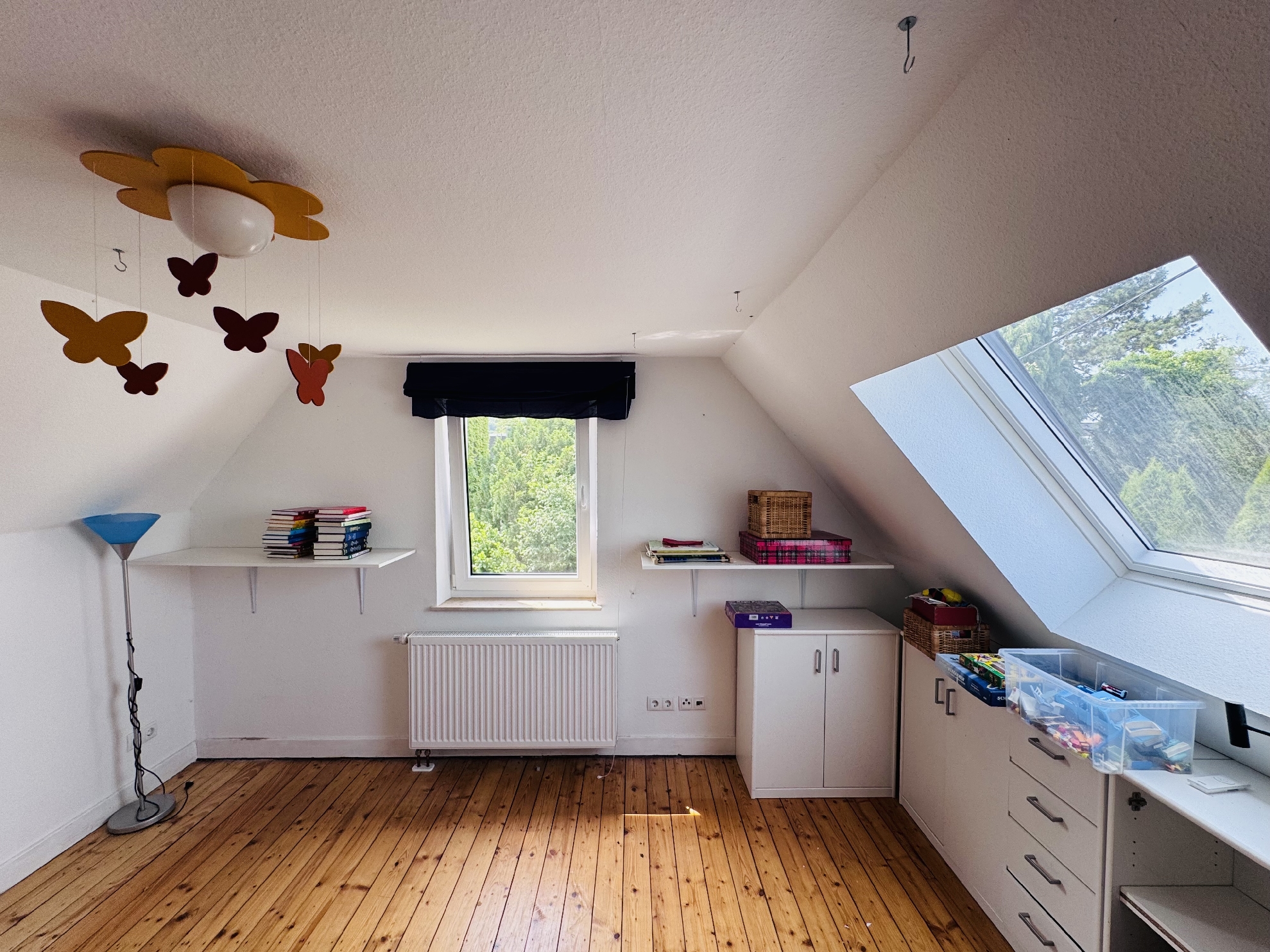 Willkommen in Ihrem neuen Zuhause! Dieses wunderschöne Einfamilienhaus aus dem Jahr 1939 wurde im Jahr 2016 umfassend saniert und bietet mit rund 200 m² Wohnfläche und acht Zimmern viel Raum für das Familienleben. Auf drei Etagen erwarten Sie helle Wohn- und Essbereiche, eine großzügige Küche mit Abstellraum sowie ein separates Büro im Erdgeschoss (Baujahr 1959) ideal für Selbständige, die Arbeitsplatz und Wohnen vereinen möchten, oder ein klassisches Homeoffice. Im Obergeschoss befinden sich ein Elternschlafzimmer, zwei weitere Zimmer sowie ein Tageslichtbad mit Dusche. Das 2016 ausgebaute Dachgeschoss beherbergt zwei zusätzliche Zimmer sowie einen Heizungsraum. Die moderne Hybrid-Luft-Wasser-Wärmepumpe (2016) sorgt effizient für wohlige Wärme. Der gepflegte Garten lädt zum Spielen und Entspannen ein.