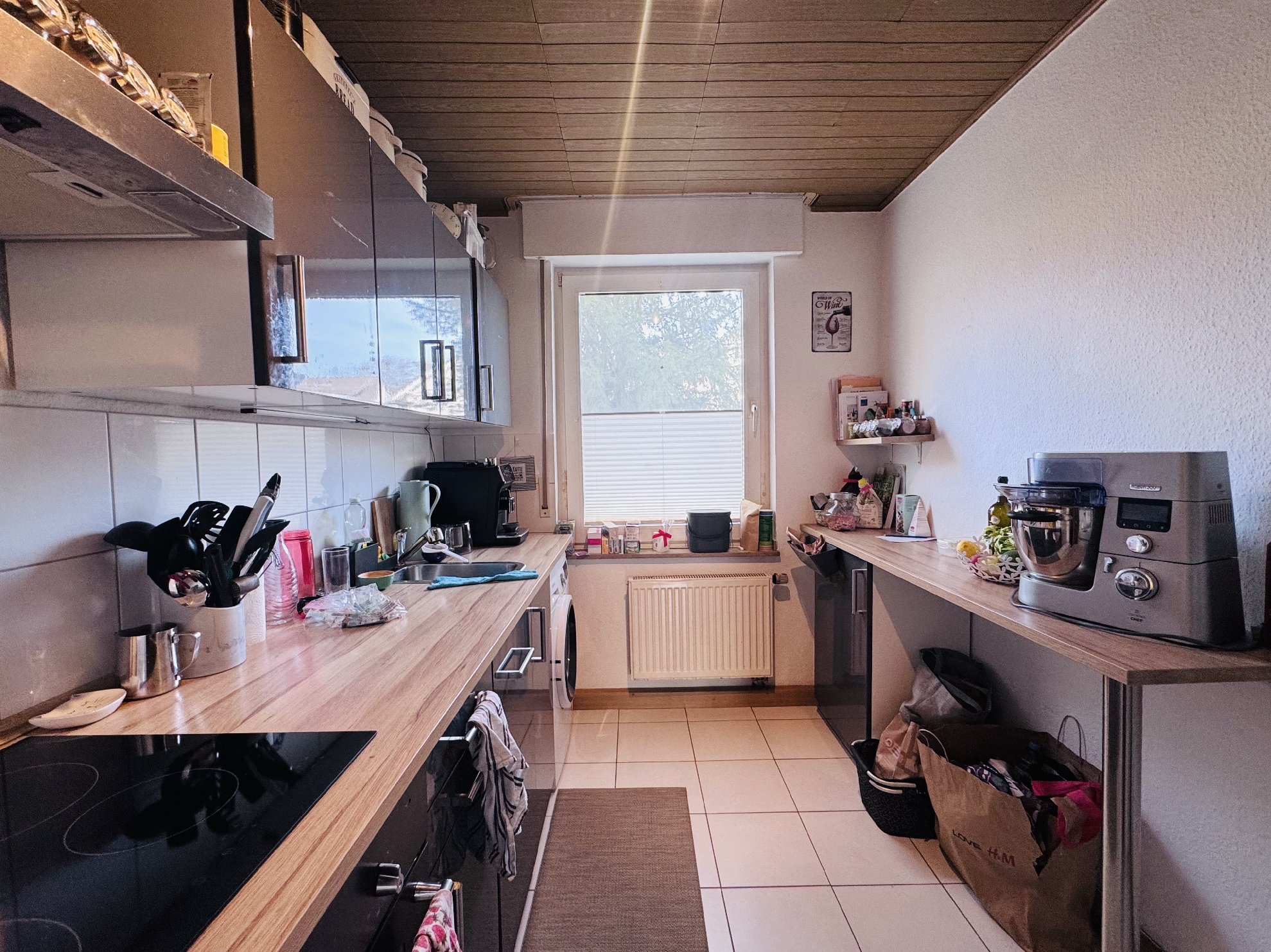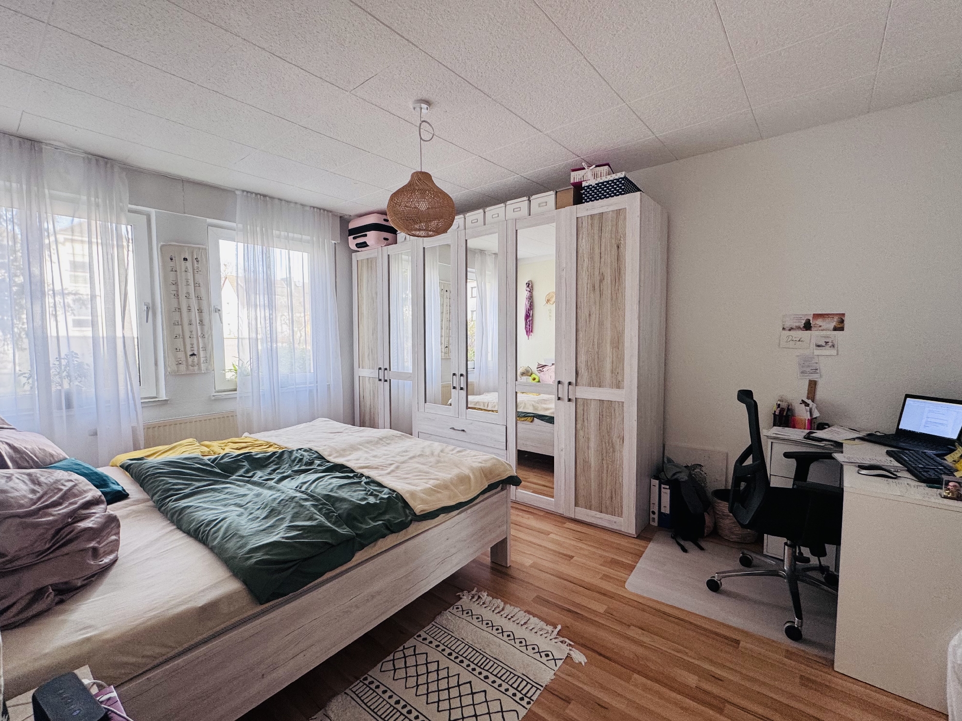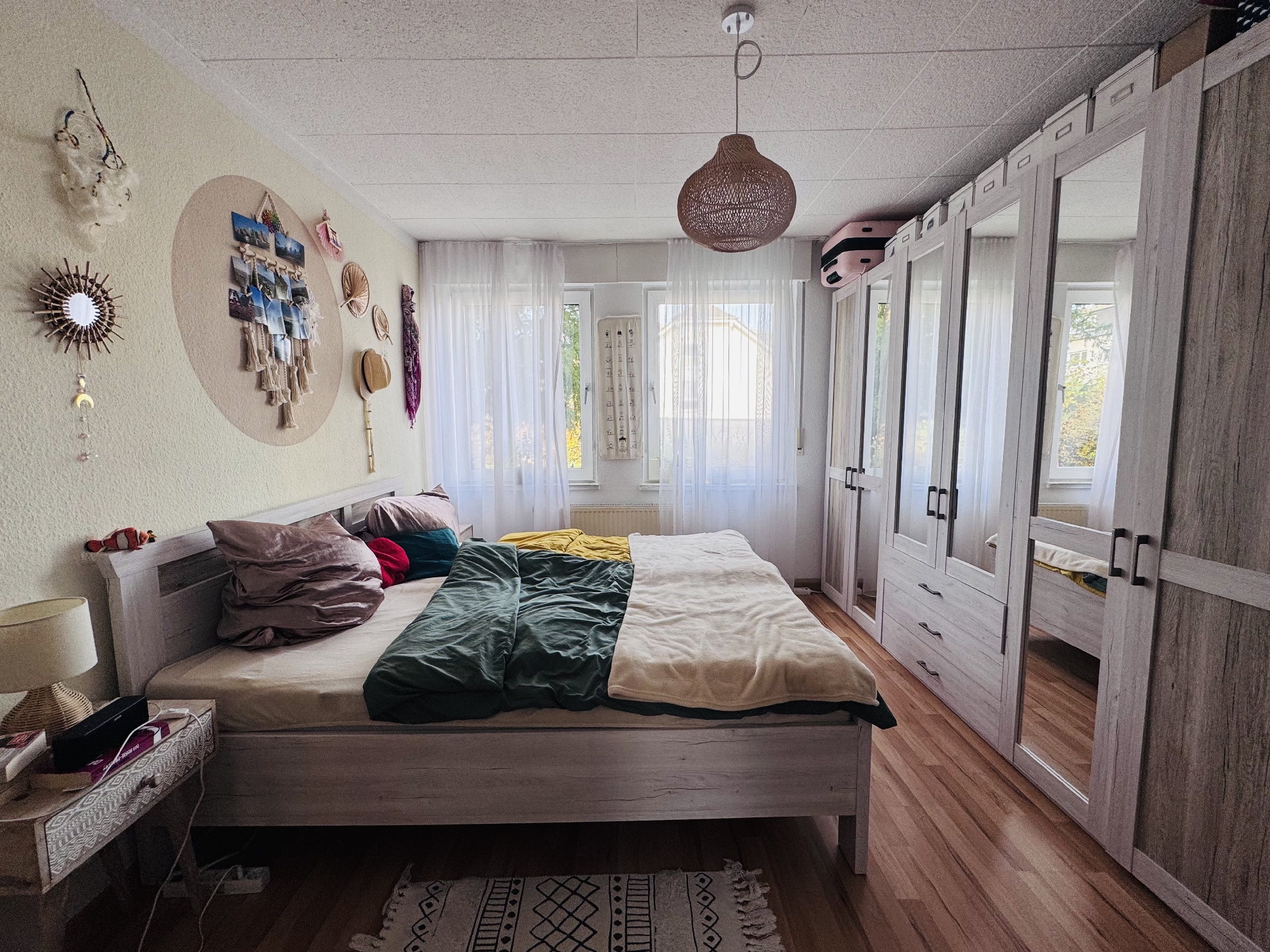 Das großzügige und gemütliche Schlafzimmer bietet ausreichend Platz für ein großes Bett, einen Kleiderschrank sowie eine Arbeitsecke. Die Küche ist ebenso geräumig. Hier befindet sich auch der Anschuss für die Waschmaschine. Das Tageslichtbad ist mit weißen Fliesen, Dusche, WC und Waschbecken ausgestattet und befindet sich in einem gepflegten Zustand.