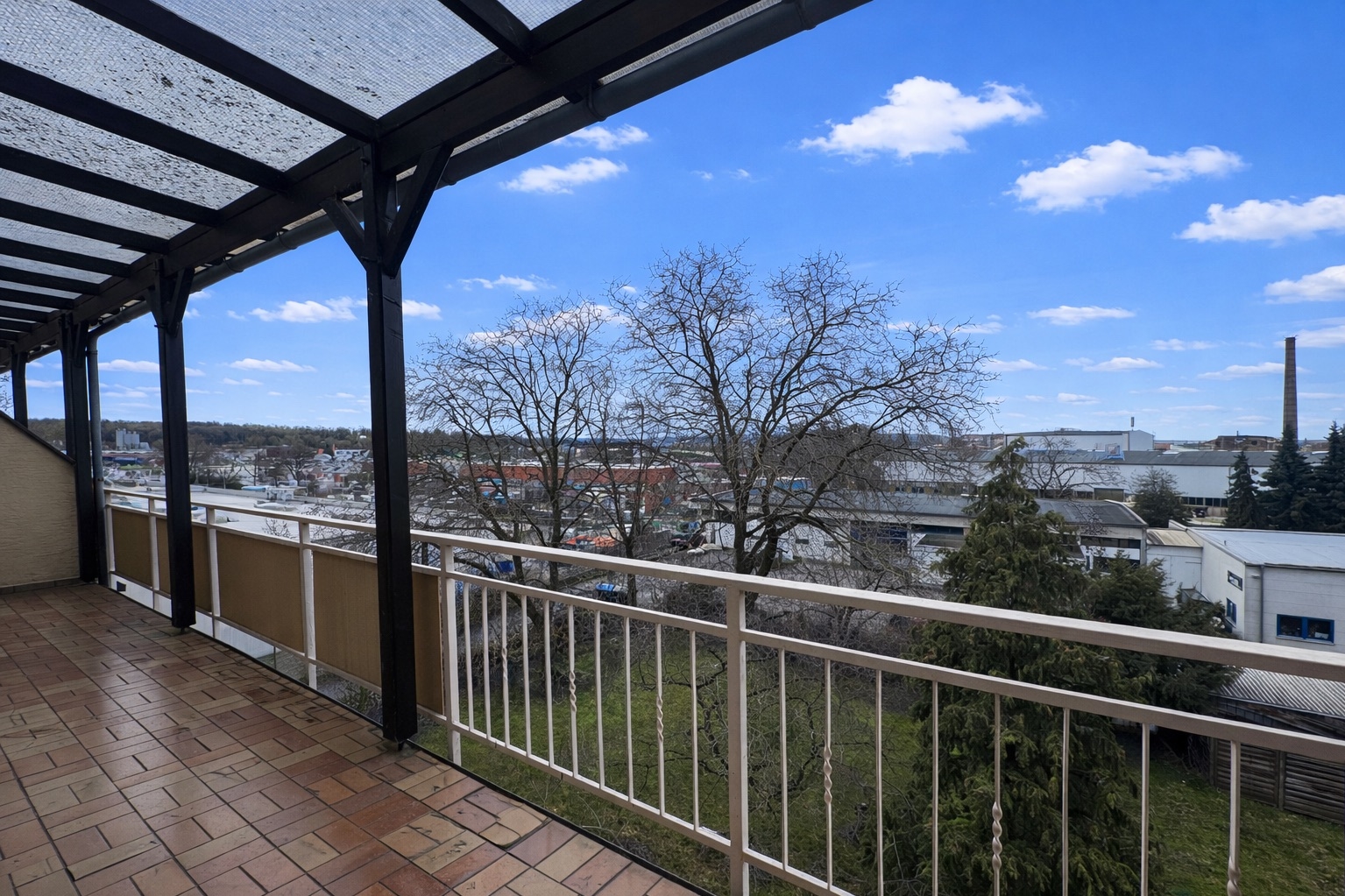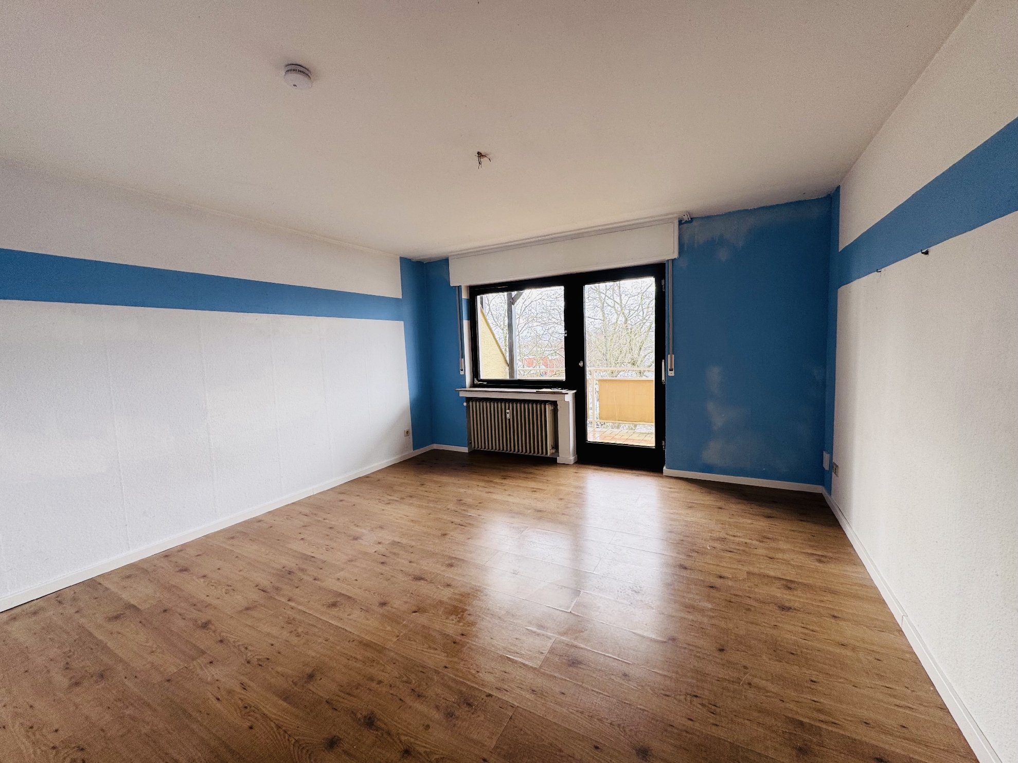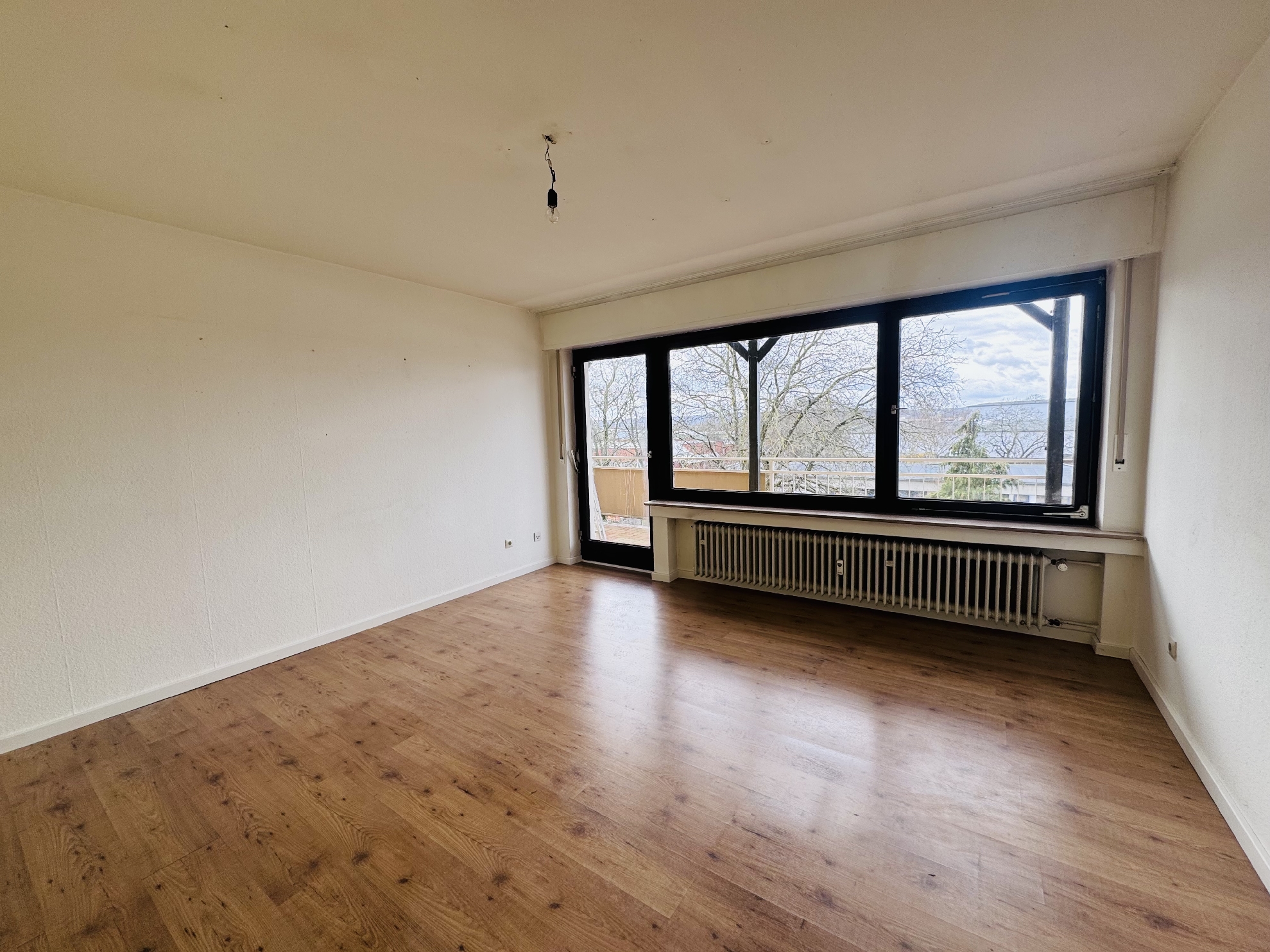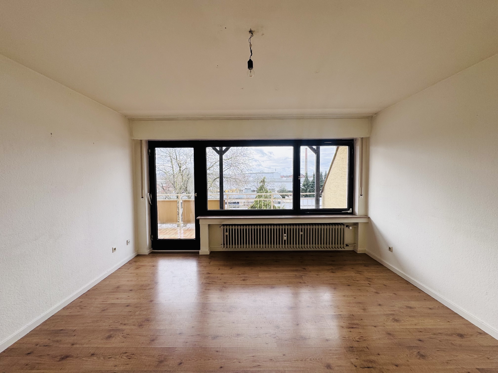 Das großzügige Wohnzimmer ist lichtdurchflutet und bietet ausreichend Platz für einen komfortablen Wohn- und Essbereich. Das geräumige Schlafzimmer ist ebenfalls gut geschnitten und schafft eine ruhige, behagliche Rückzugsmöglichkeit. Von beiden Zimmern aus gelangt man auf den großen, überdachten Balkon.