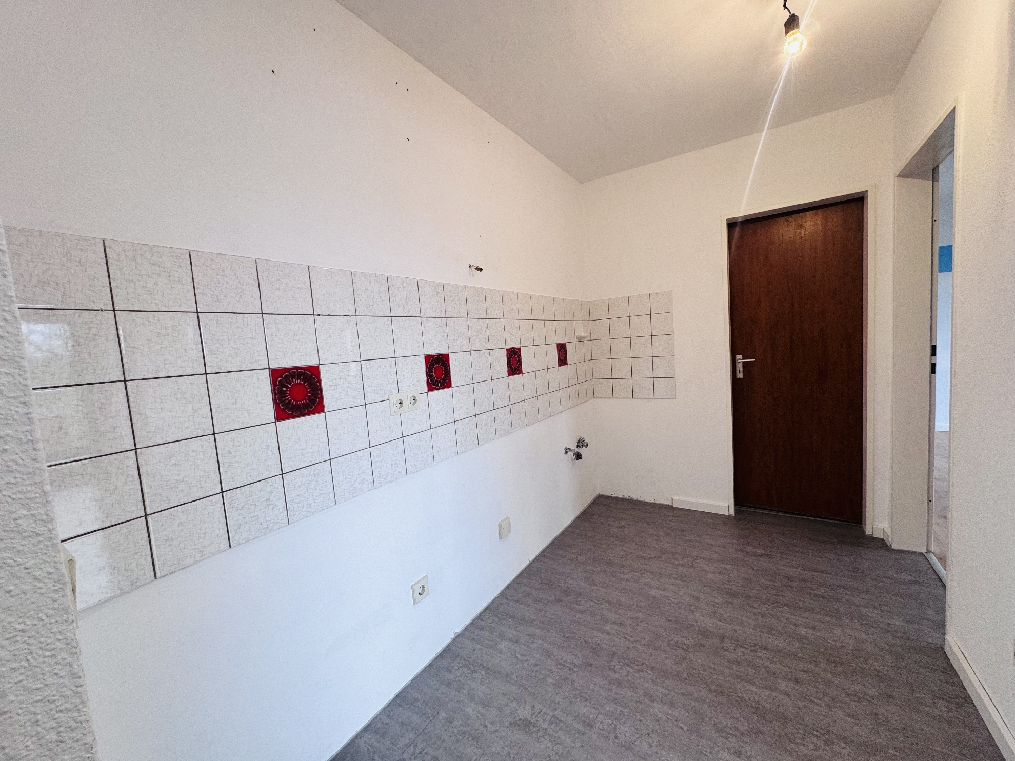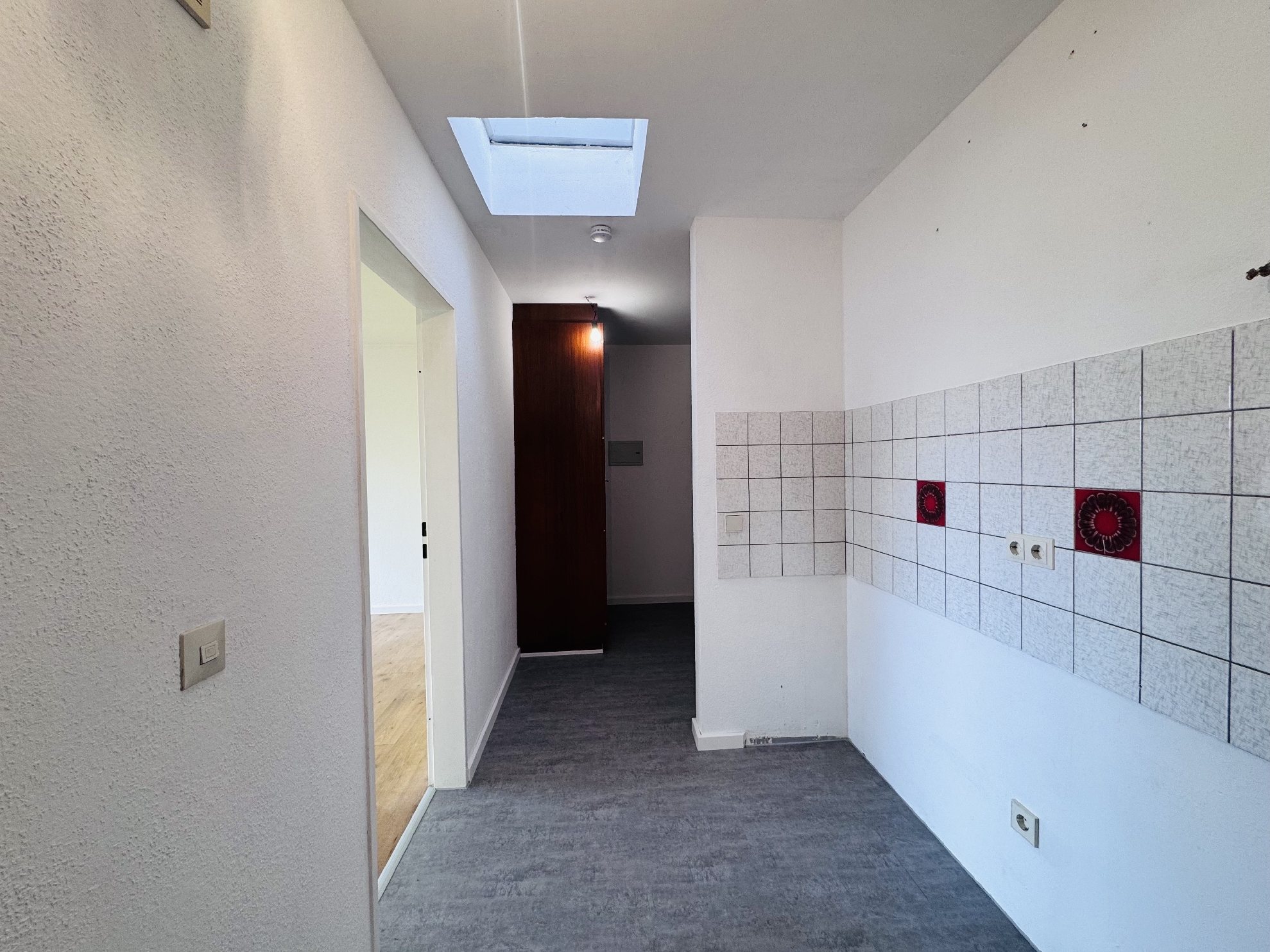 In der großzügigen Diele lässt sich ideal eine Pantryküche integrieren, sodass der vorhandene Raum optimal genutzt werden kann. Das Badezimmer ist mit einer Badewanne sowie einem Waschbecken ausgestattet und präsentiert sich gepflegt und funktional.